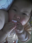 某葉っぱ聴きながら舌をだしていた娘