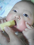 夜食代わりに食べてた林檎を口の前へ